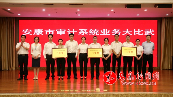 在必答題、搶答題、風(fēng)險題、附加題4個環(huán)節(jié)中,參賽隊員從容不迫、志在必得,上演了一場智慧與勇氣的較量,F(xiàn)場氣氛緊張激烈,比賽屢屢進入白熱化階段,硝煙味十足。經(jīng)過近3個小時的角逐,最終市審計局榮獲一等獎,鎮(zhèn)坪縣審計局、白河縣審計局榮獲二等獎,寧陜縣審計局、嵐皋縣審計局、平利縣審計局榮登三等獎。