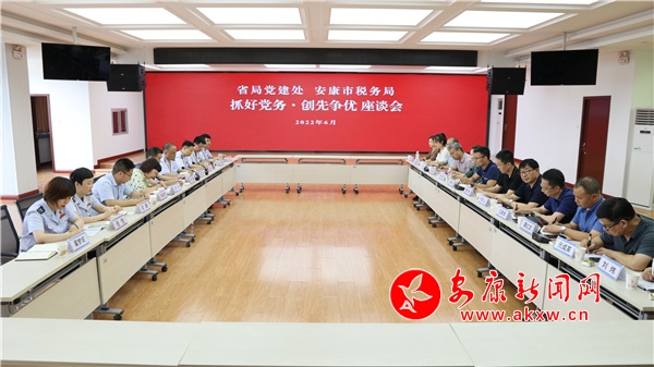 在國家稅務(wù)總局安康市漢濱區(qū)稅務(wù)局,調(diào)研組現(xiàn)場聽取“四鐵”政治機(jī)關(guān)建設(shè)、“雙建雙優(yōu)”建設(shè)情況講解,實地觀摩身邊先進(jìn)模范展示大廳,勞模工作室、雙優(yōu)培育室,黨史教育長廊、法治教育長廊、稅史教育長廊、廉潔教育長廊、責(zé)任擔(dān)當(dāng)長廊“一廳兩室五廊”教育陣地和“一支部一品牌”黨員活動陣地,閱覽了黨建基礎(chǔ)資料,深入了解漢濱區(qū)稅務(wù)局黨建工作規(guī)范化建設(shè)新思路、新做法。座談會上,與會人員逐一發(fā)言,圍繞“抓好黨務(wù)·創(chuàng)先爭優(yōu)”主題,從各單位黨建工作主要做法、工作經(jīng)驗、特色亮點等方面進(jìn)行了深入交流,對基層黨建工作中存在的突出問題溝通探討,就進(jìn)一步做好陜西稅務(wù)黨建工作建言獻(xiàn)策,座談會現(xiàn)場氣氛熱烈。