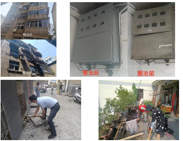第二工作組牽頭對省糧農安康直屬庫家屬院私搭亂建進行了專項整治,拆除違章建筑1處,私建臺階6處、廢棄水井1處,安裝共享充電樁6個,樓道燈15盞、修復破損地面100平方米,清運垃圾4車。
