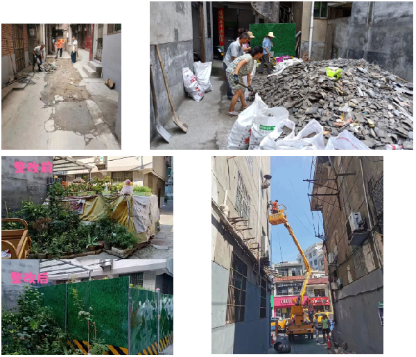 第六工作組牽頭對西井街集中整改空中飛線800延米;安排施工隊現(xiàn)場設計施工,徹底解決垃圾死角8處;解決墻體污染10余處,清除亂貼亂畫、軟體小廣告20余處。