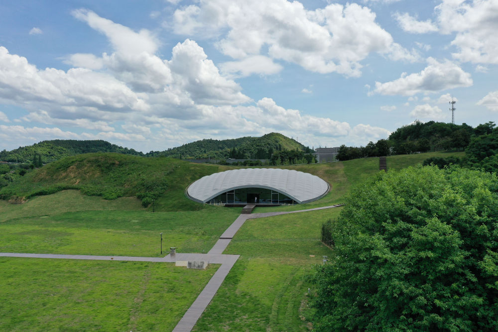 2022年7月6日拍攝的良渚古城遺址老虎嶺遺址公園(無人機(jī)照片)。新華社記者 黃宗治 攝