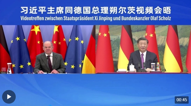 11月3日下午,國家主席習近平同德國總理朔爾茨舉行視頻會晤。QGu安康新聞網