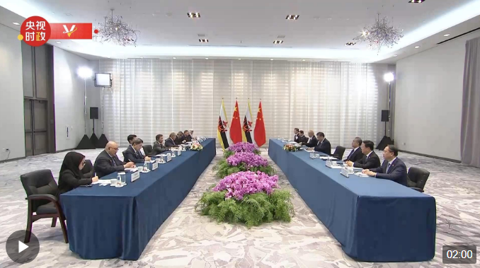 當?shù)貢r間11月16日下午,國家主席習近平在舊金山會見文萊蘇丹哈桑納爾。