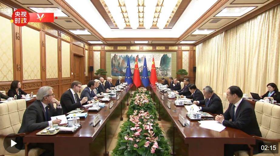 歐洲理事會主席米歇爾說:“我們很高興與您見面,我們共同致力于與中國發(fā)展穩(wěn)定互利的關(guān)系。歐盟和中國是重要的貿(mào)易伙伴,我們希望建立可持續(xù)、平衡且公平的貿(mào)易關(guān)系,為我們的人民帶來更大的繁榮。我們堅持奉行一個中國政策。”