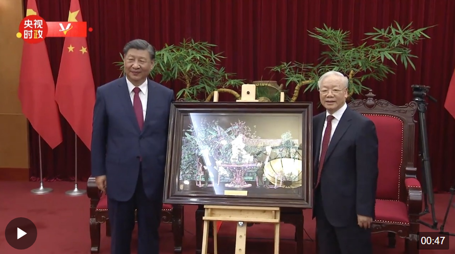 茶敘現(xiàn)場(chǎng),阮富仲向習(xí)近平贈(zèng)送一幅圖片。阮富仲說:“東西可能不是非常好,但是珍貴的是兄弟情誼。”KTe安康新聞網(wǎng)