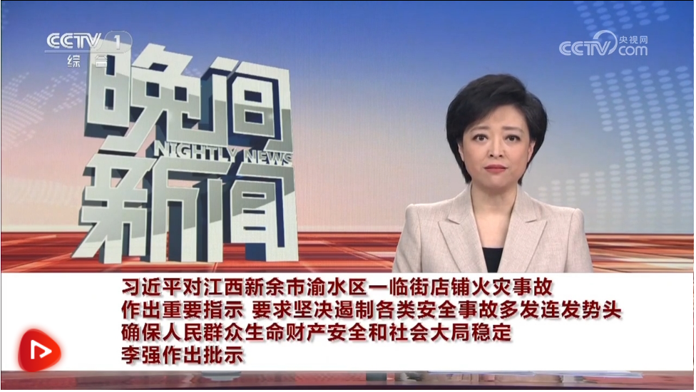 習(xí)近平對(duì)江西新余市渝水區(qū)一臨街店鋪火災(zāi)事故作出重要指示