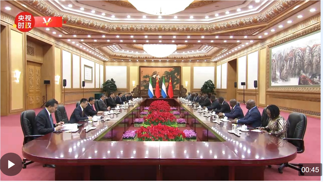 2月28日下午,國(guó)家主席習(xí)近平在人民大會(huì)堂同來(lái)華進(jìn)行國(guó)事訪問(wèn)的塞拉利昂總統(tǒng)比奧舉行會(huì)談。