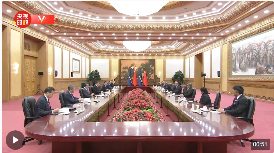 3月25日下午,國家主席習近平在人民大會堂同來華進行國事訪問的瑙魯總統(tǒng)阿迪昂舉行會談。