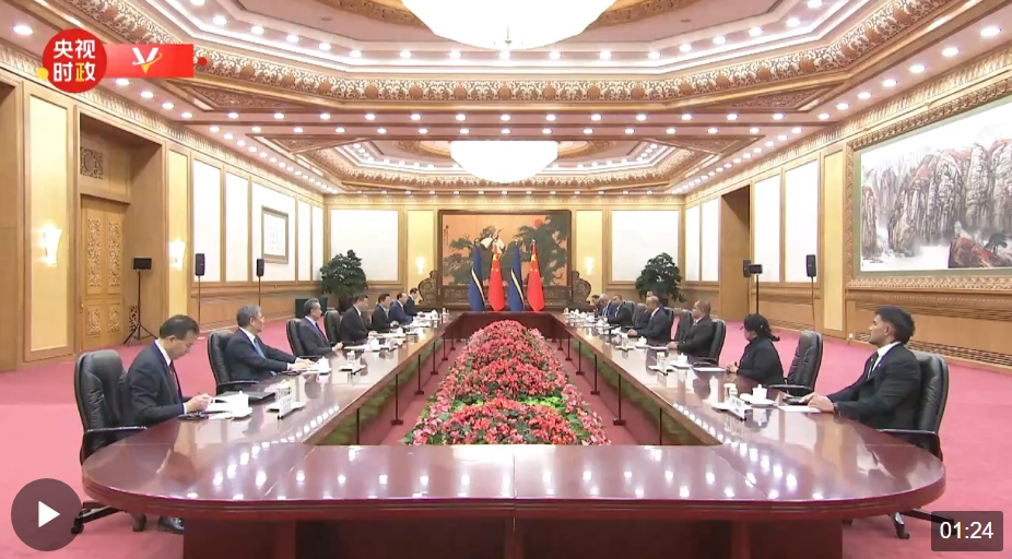 習近平說,歡迎你對中國進行國事訪問。今年1月,瑙魯作出堅持一個中國原則、同中國復交的政治決斷。這是符合歷史大勢、順應時代潮流之舉。我們是第一次見面,但我對太平洋島國并不陌生,曾3次到訪過這個地區(qū)。我們在南太有很多老朋友,現在又有了你這位新朋友,我感到很高興。