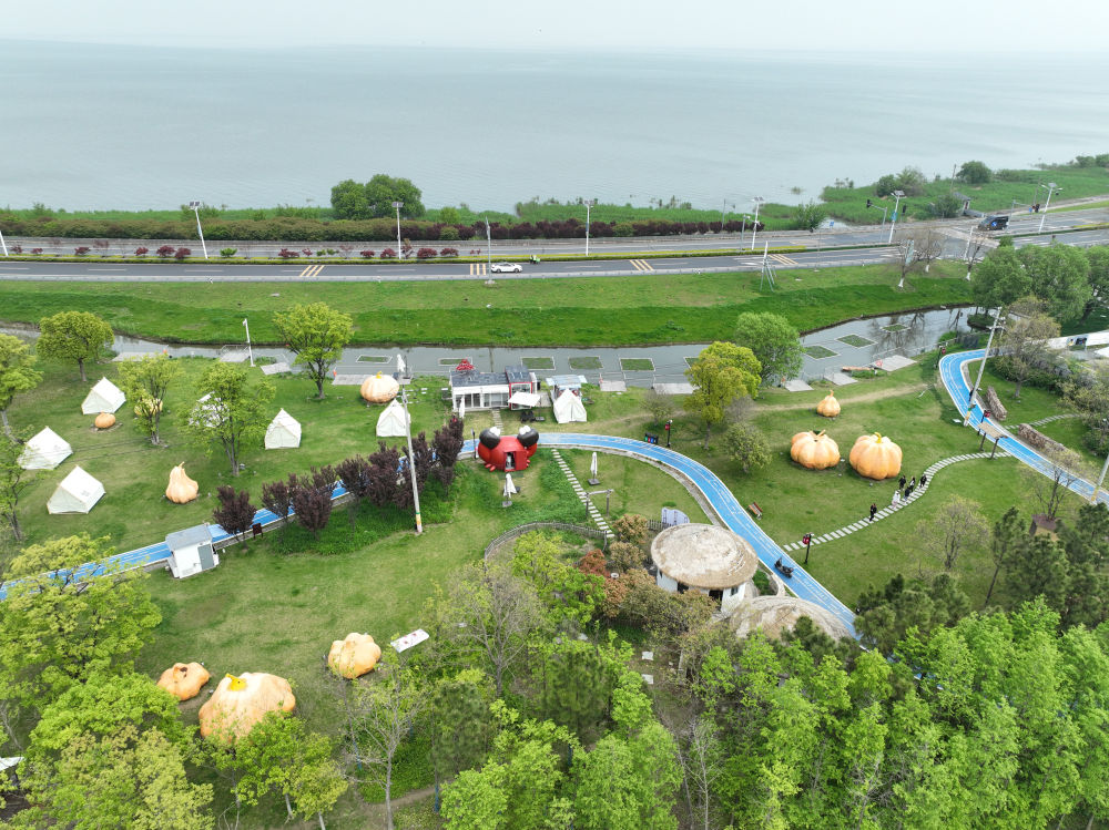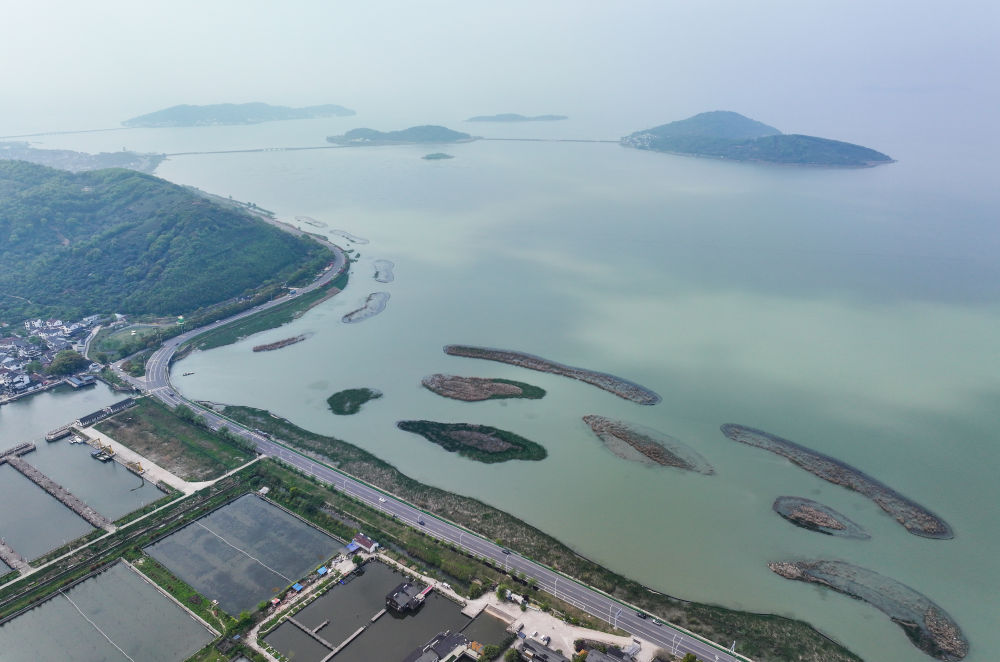 這是江蘇省蘇州市吳中區(qū)金庭鎮(zhèn)環(huán)太湖濕地帶修復(fù)項(xiàng)目(2024年4月11日攝,無(wú)人機(jī)照片)。