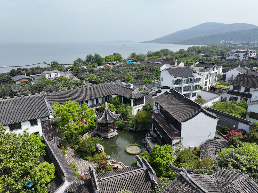這是在江蘇省蘇州市吳中區(qū)東山鎮(zhèn)太湖畔拍攝的民宿(2024年4月11日攝,無(wú)人機(jī)照片)。