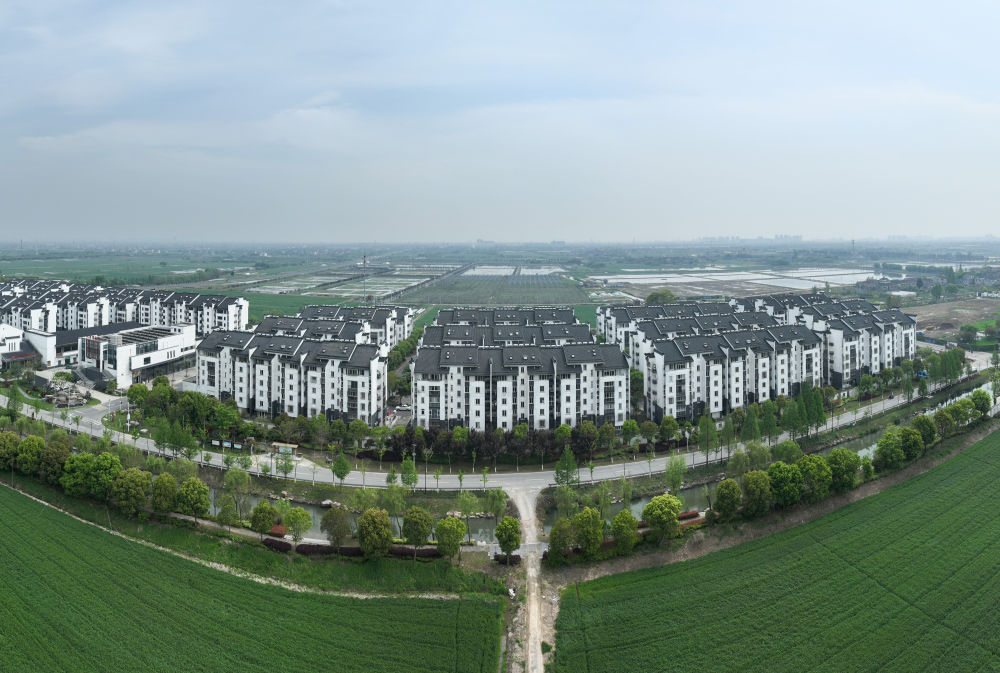 這是位于浙江省湖州市安置上岸漁民的義皋新村(2024年4月11日攝,無(wú)人機(jī)照片)。