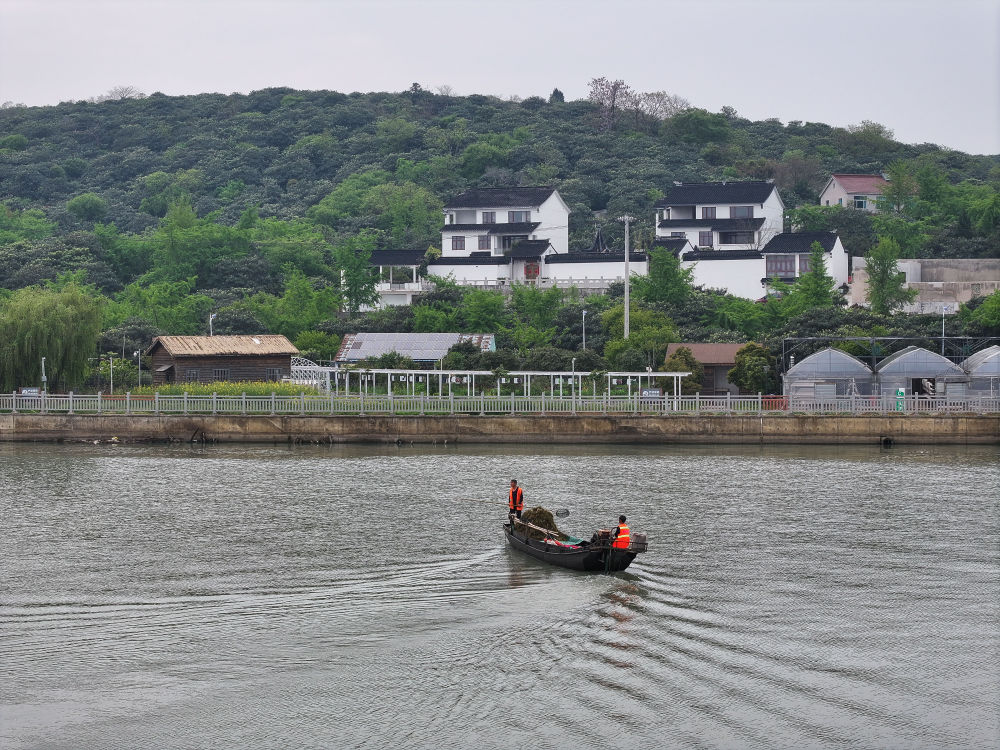 2024年4月11日,江蘇省蘇州市吳中區(qū)金庭水利水務(wù)管理服務(wù)站的工作人員(退捕漁民)在太湖上打撈漂浮物(無(wú)人機(jī)照片)。2020年,為保護(hù)太湖水生生物資源、促進(jìn)水域生態(tài)環(huán)境有效改善,金庭鎮(zhèn)漁民停止捕撈作業(yè),部分被安置到環(huán)衛(wèi)站、旅游集團(tuán)就業(yè)。