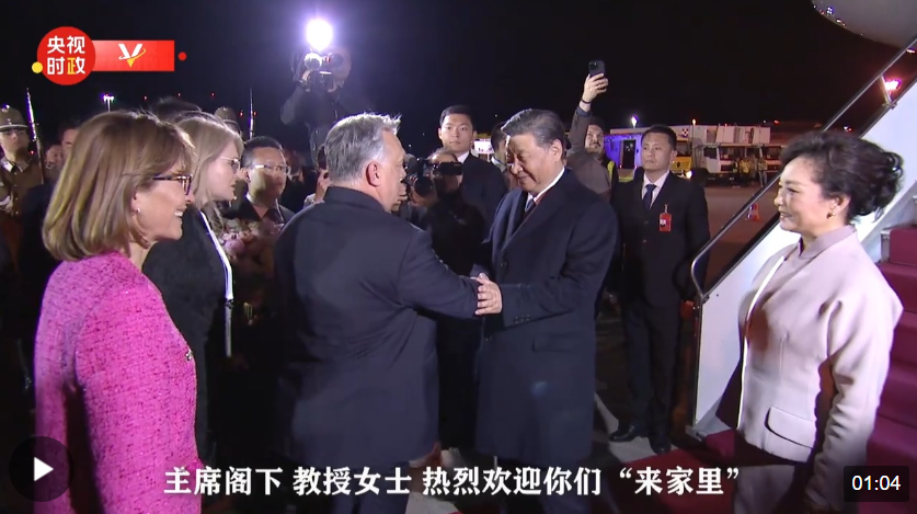 習(xí)近平乘坐的專機(jī)抵達(dá)布達(dá)佩斯國(guó)際機(jī)場(chǎng)時(shí),匈牙利總理歐爾班夫婦、外長(zhǎng)西雅爾多等政府高級(jí)官員熱情迎接。歐爾班總理對(duì)習(xí)近平主席夫婦說,歡迎你們“來家里”,我們感到極大榮光。